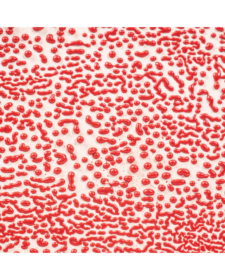 CR-58 ist eine glänzende rote Glasur, die nach dem Brennen in erhabene Formen unterschiedlicher Größe und Gestalt kriecht. Das Ergebnis ist eine Oberfläche mit unvorhersehbaren, natürlichen Mustern, die jedem Stück eine einzigartige Textur und visuelles Interesse verleihen.