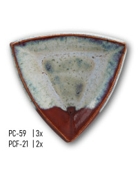 PC Glasuren benötigen eine bestimmte Auftragsdicke für die richtige Glasurfarbe. AMACO empfiehlt die Glasur in 3 Lagen aufzutragen (siehe auch Hinweis auf der Dose). Unterschiedliche Auftragsdicken ergeben verschiedene Resultate. Die unten aufgeführten Musterplatten zeigen Resultate mit unterschiedlicher Auftragsdicke.
