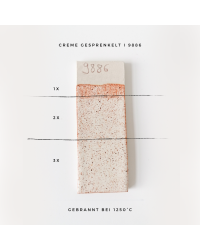 - Glänzende, deckende, cremefarbene Steinzeugglasur mit kleinen braunen Sprenkeln