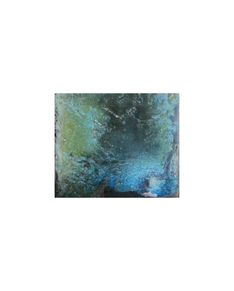 Interessante, von Türkis über Rotbraun bis Gelb spielende Seidenglanz-Glasur. Mit unregelmässiger Glasuroberfläche. Eine etwas unberechenbare aber märchenhafte Glasur. Fein strukturiertes Kraqueleenetz. Temperaturbereich 950 - 1000°C.
