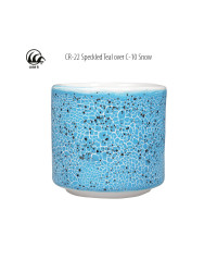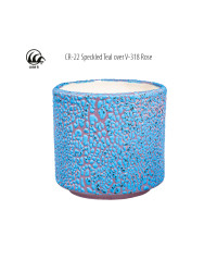 CR-22 est une glaçure sarcelle brillante avec des taches noires qui, lorsqu'elle est cuite, rampe pour former des formes en relief de tailles et de formes différentes. Le résultat est une surface marquée par des motifs naturels imprévisibles qui ajoutent une texture unique et un intérêt visuel à chaque pièce.