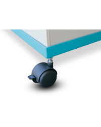 La cuve en plastique robuste et résistante aux chocs, fabriquée en polypropylène écologique, repose sur un socle en acier stable et mobile équipé de quatre roulettes pivotantes verrouillables. L'appareil peut ainsi être déplacé sans effort pour être nettoyé.