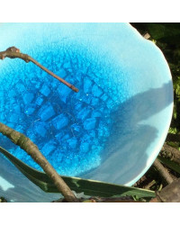 - En appliquant une couche un peu plus épaisse sur des surfaces horizontales, par exemple la surface intérieure d'assiettes et de bols, on obtient sur certaines argiles un craquelé en écailles intéressant, d'un turquoise plus foncé.