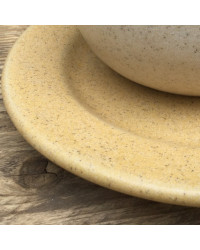 - Émail grès jaune sable satiné, finement moucheté de noir